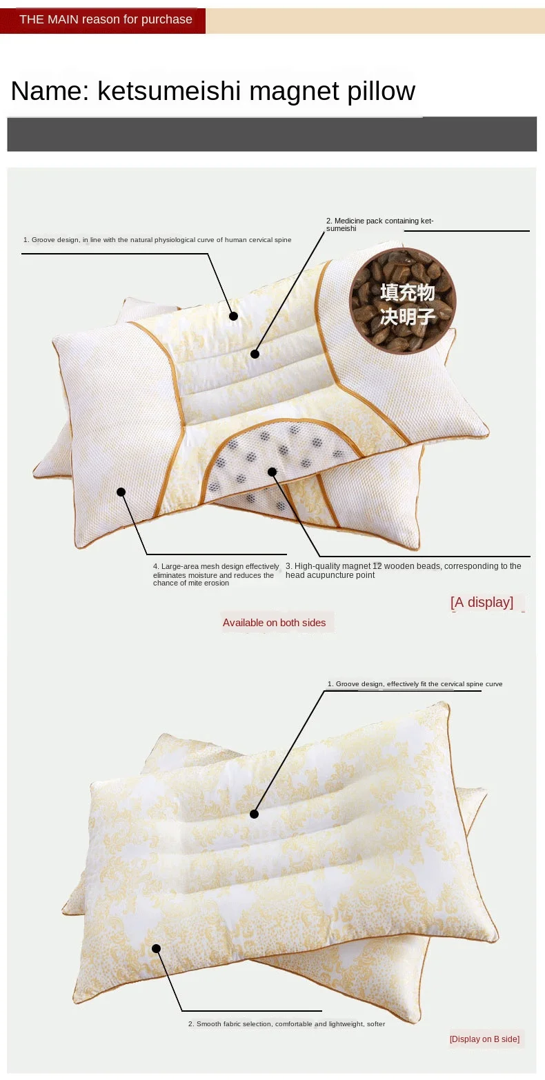 Combinando sementes de cassia, usadas há séculos na medicina chinesa, com pontos magnéticos terapêuticos, este travesseiro ajuda a relaxar a musculatura, melhorar a postura e reduzir dores no pescoço e ombros, prevenindo o incômodo torcicolo ao acordar.